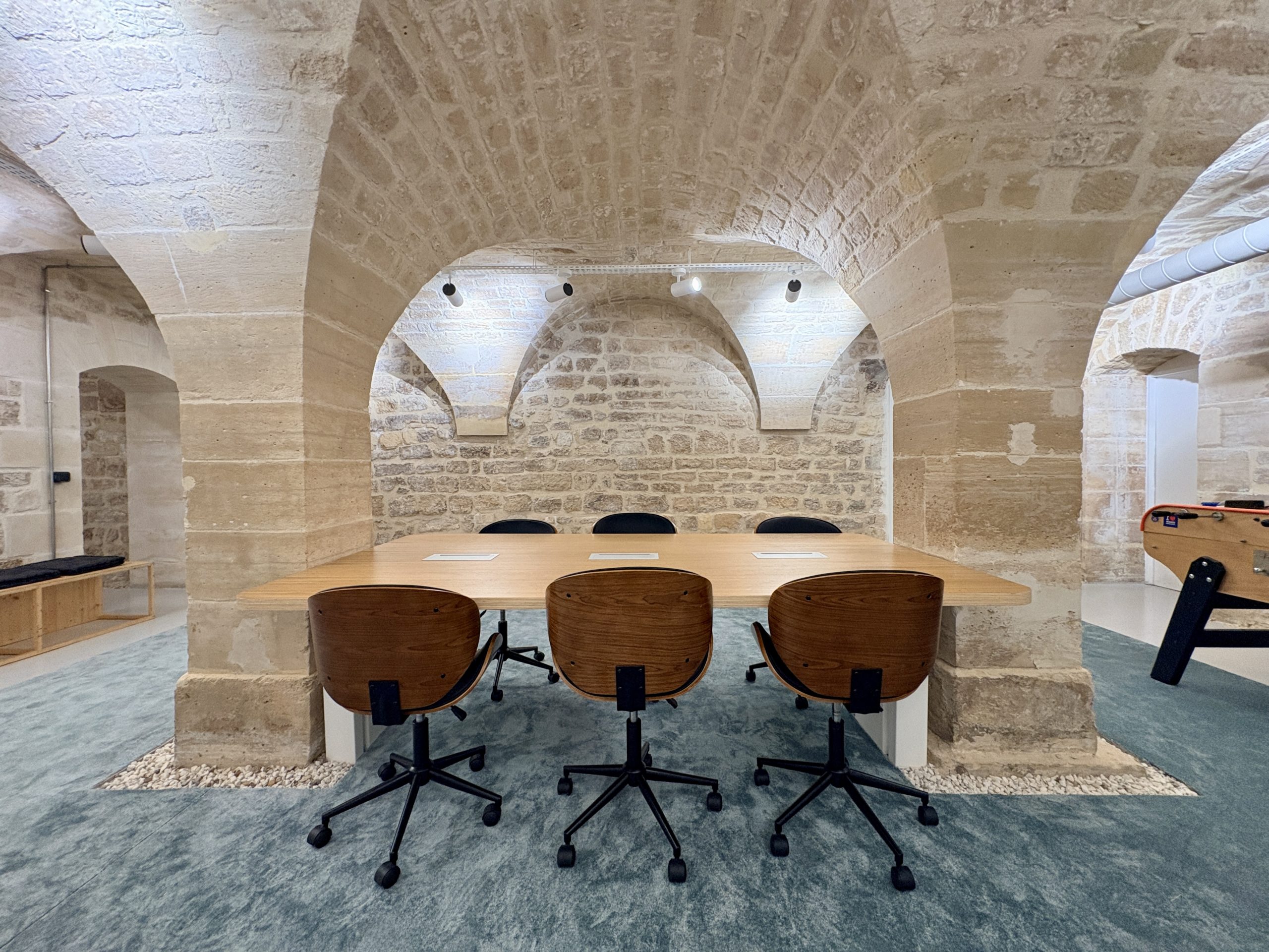 Room measuring 46m² (5,80m x 8m / 500 square feet) in a vaulted cellar, furnished to comfortably house team meetings and conferences.